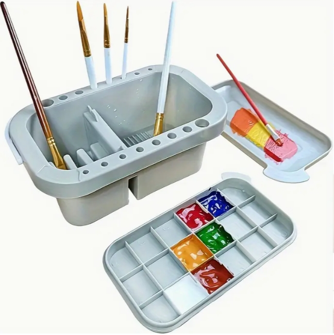 แปรงรูปสี่เหลี่ยมผืนผ้าพร้อมจานสีในฝา